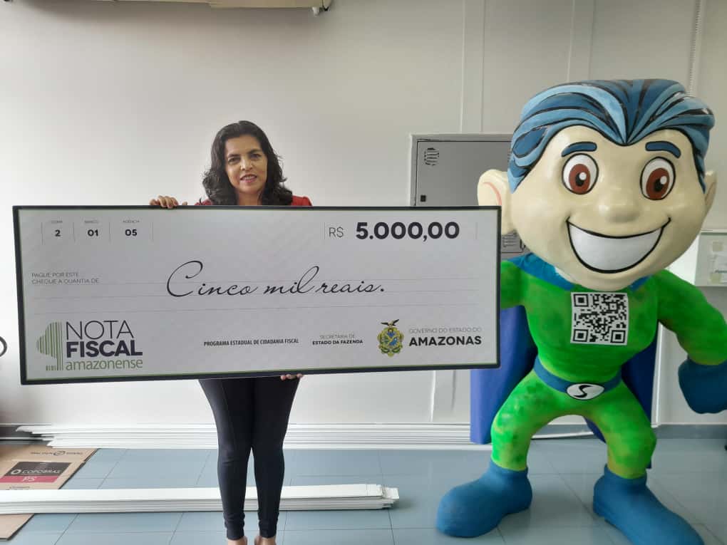 Raimunda Maquine Nunes Gomes ganhou 5 mil reais no 98º sorteio mensal da Campanha Nota Fiscal Amazonense