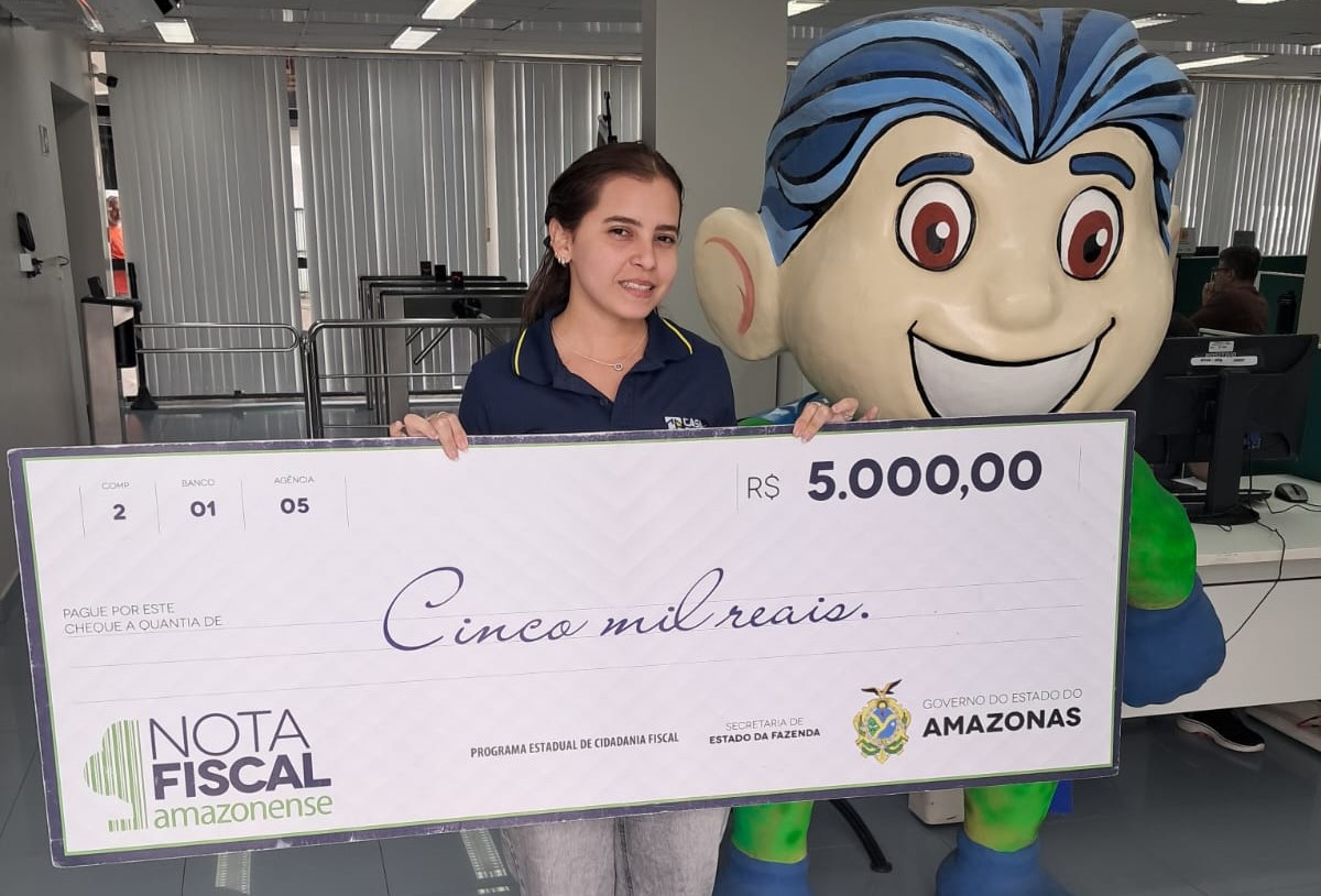 Thallyta Sara Carvalho Monteiro ganhou 5 mil reais no 104° sorteio mensal da Campanha Nota Fiscal Amazonense